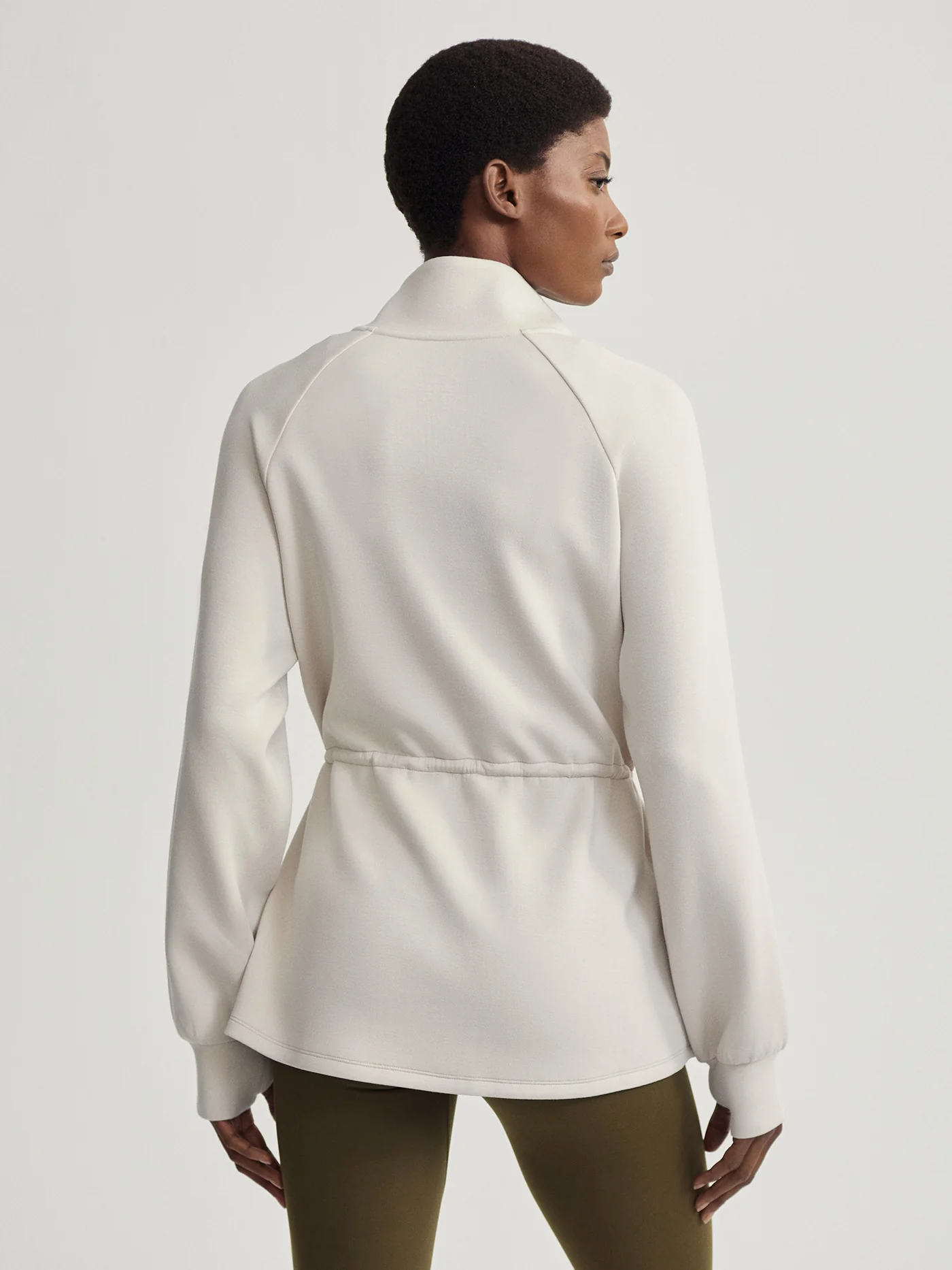 This super soft jacket features an adjustable internal drawcord and a longline silhouette. With thumbholes, raglan sleeves, and a standard fit, it offers comfort and functionality, perfect for layering on active days.