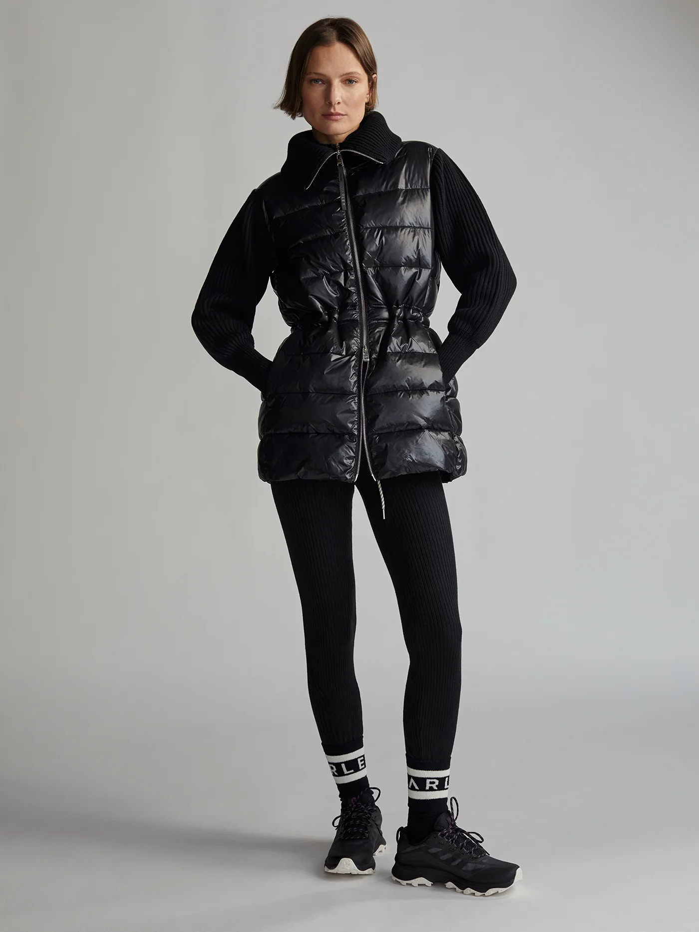 This regular-fit jacket features a quilted body, cotton knit collar and sleeves, and an adjustable cinch waist drawcord for a personalised fit. The zip-through design ensures convenience, while the deep cuffs add an elegant touch.