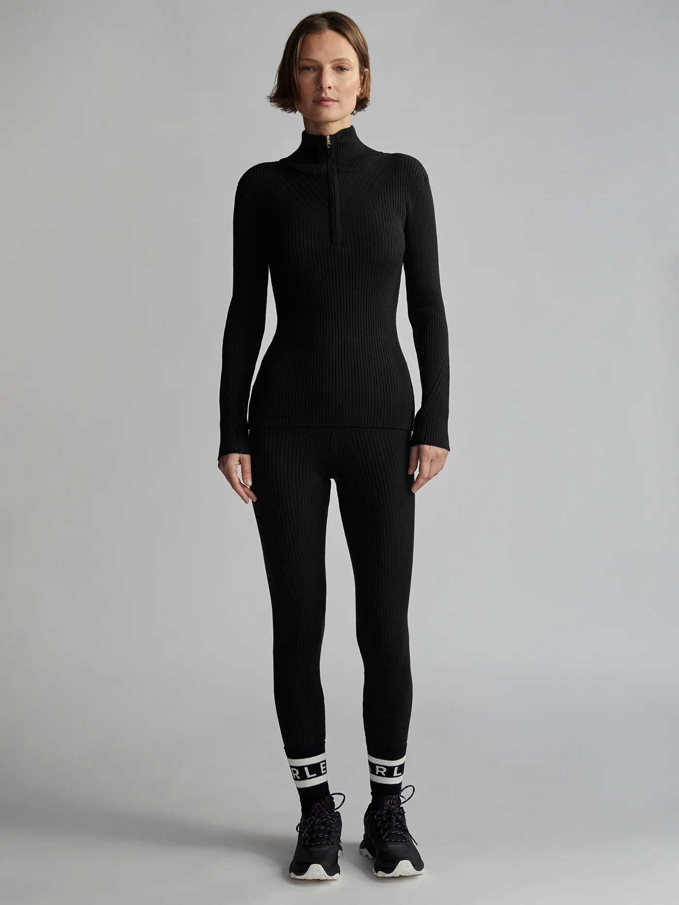 This knitted top boasts a half-zip design with placement rib detailing for a contemporary finish. Made from plush viscose yarn in a fine wide rib, itâs perfect for layering under heavy sweaters and outerwear during cold winter days, whether you're in the mountains or the city.
