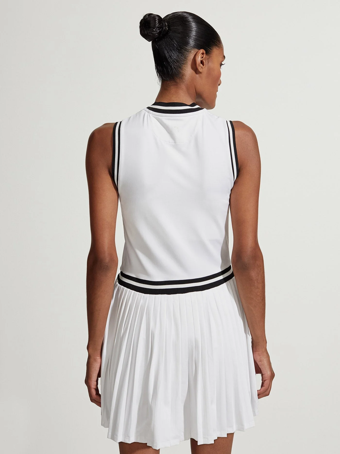 Crafted from a softly peached, recycled micro-poly fabric, this form-fitting, zip-front dress features a pleated skirt and contrast rib trim detailing. Cut to a longer length for enhanced coverage, the style is complete with an internal short with side pockets, so you can easily carry your essentials while on-the-move.