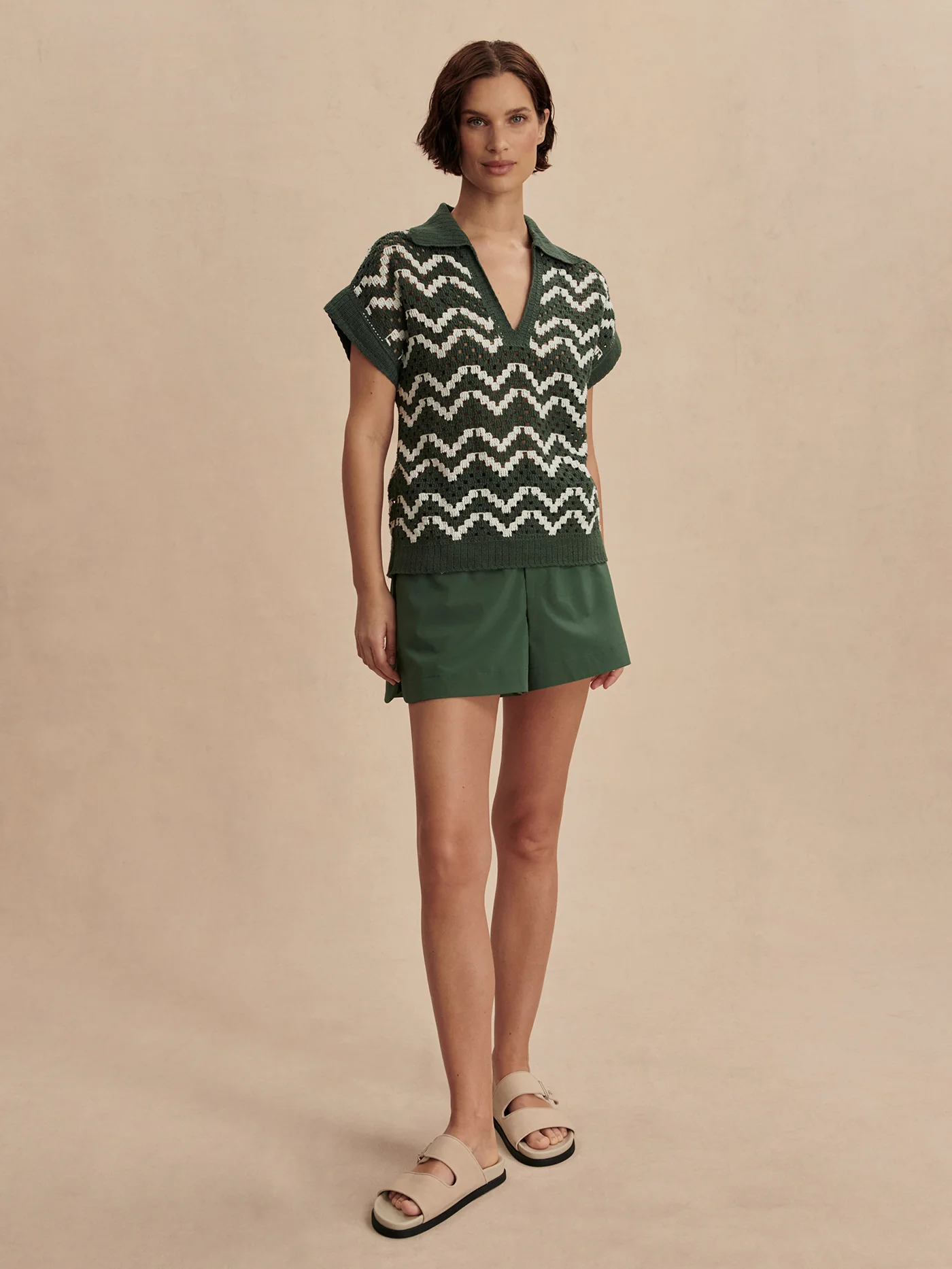 Crafted from 100% cotton in a machine crochet stitch, the Joelle polo top combines club style with everyday elegance. It has a more relaxed fit and a polo neckline with a deep V-neck that adds sophistication.