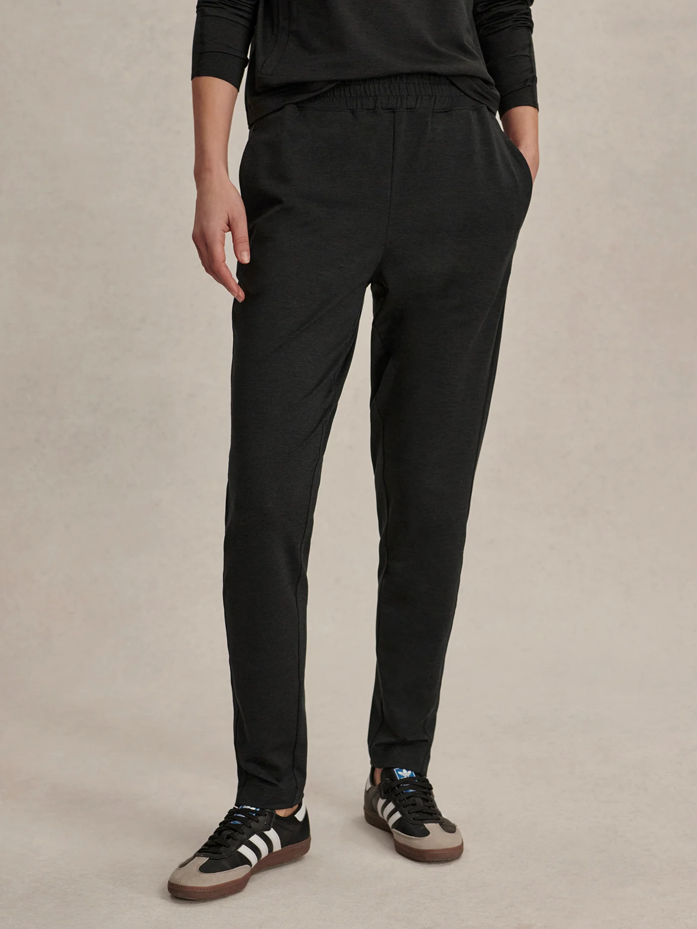 An elevated take on an active sweatpant, the Kya is crafted from Motion Jersey for premium comfort and softness - perfect for throwing on pre- or post-workout. It has a high-rise fit with a slimmer, tapered leg. Instead of cuffs, a zip on the side at the ankles elevates the look.